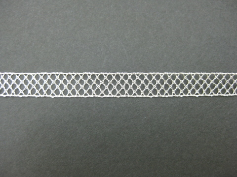 約1cm幅の少し厚みのあるしっかりとした、ひし形デザインのメタリックレース。